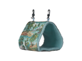 General Info: The Vee House Pet Tent is made of a soft fabric creating a haven for your bird. Comes in 3 sizes and varied material patterns and colors. Tent easily collapses for storage and pops open for continued use anywhere. Includes 2 Plastic Spring Clips for hanging. Inside pocket to insert cardboard base to firm bottom. Easily replaceable and removable for washing. Cleaning: Remove Floor. Hand wash tent in cold water, pop open to retain shape and drip dry. Made in the USA. Fabric patterns vary.